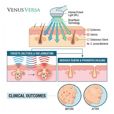 Take control of your complexion. Acne affects more than just your skin; it affects your confidence. IPL therapy helps clear active congestion and prevents future flare-ups.